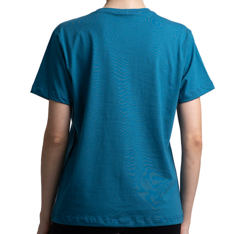 T-shirt azul em malha 100% algodão.